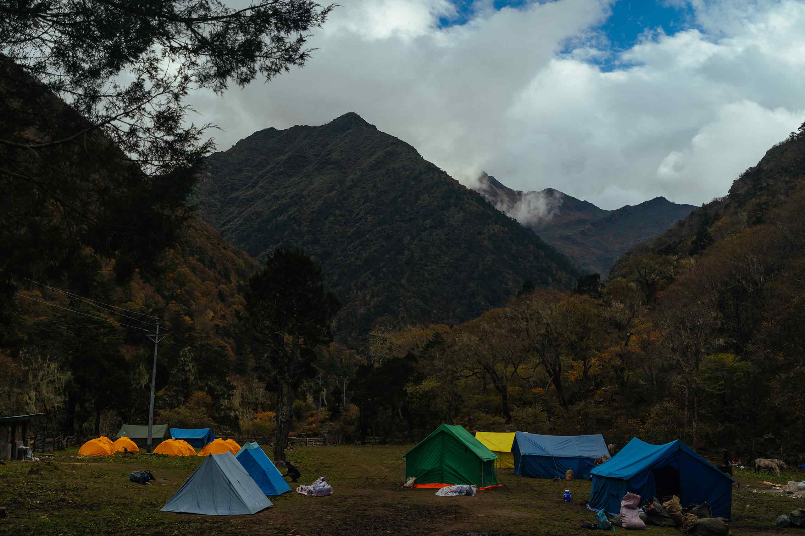 The trail continues along the Pa Chhu (Paro River), winding up and down through beautiful forests of pine, oak, and spruce. After crossing a bridge to the left side of the river, you will stop for a hot lunch. The journey then resumes, following the riverbank as the path climbs through rhododendron forests before crossing the river once more to finally reach your campsite, set at an altitude of 3750 meters.